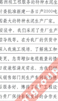 長江葛洲壩水泥廠對我公司服務(wù)熱情、交貨及時(shí)、產(chǎn)品質(zhì)量好的評價(jià)